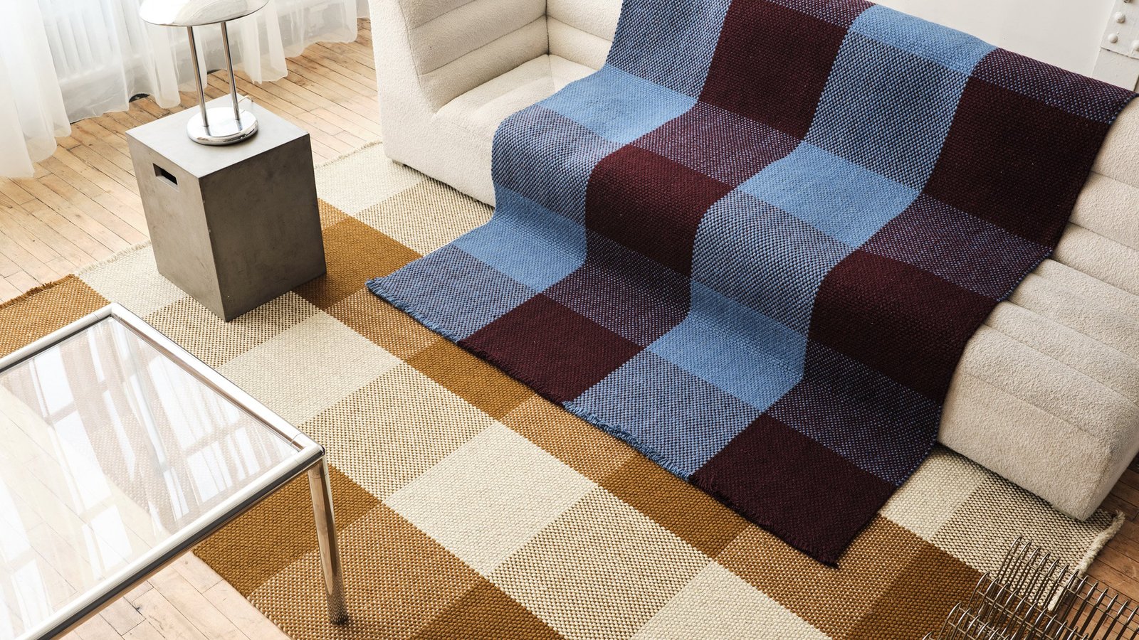Sala de exposición Dezeen: marca estadounidense Cuotas ha lanzado lo último en su línea de fabricación native alfombrasque está decorado con un patrón de cuadros de gran tamaño related a un cuadro de cuadros.