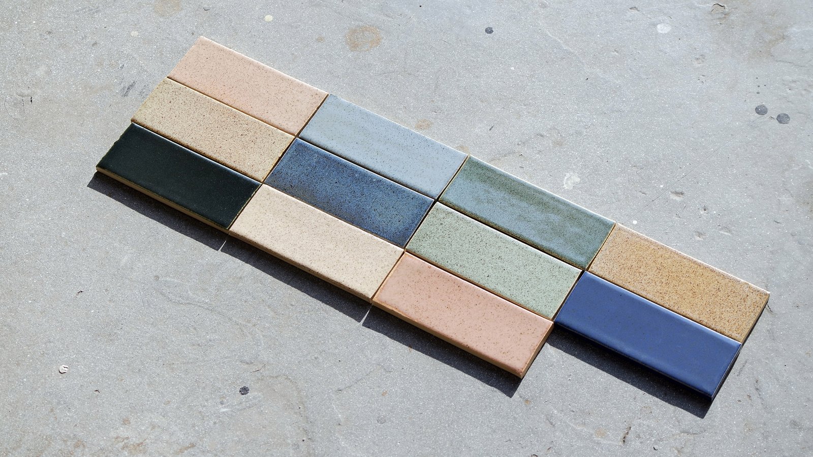 Mosaicos de fundamentos se elaboran recogiendo y triturando residuos de demolición, a los que luego se les da forma, se secan, se vidrian y se cuecen a mano en un entorno de producción totalmente libre de fósiles, según Mezclado.