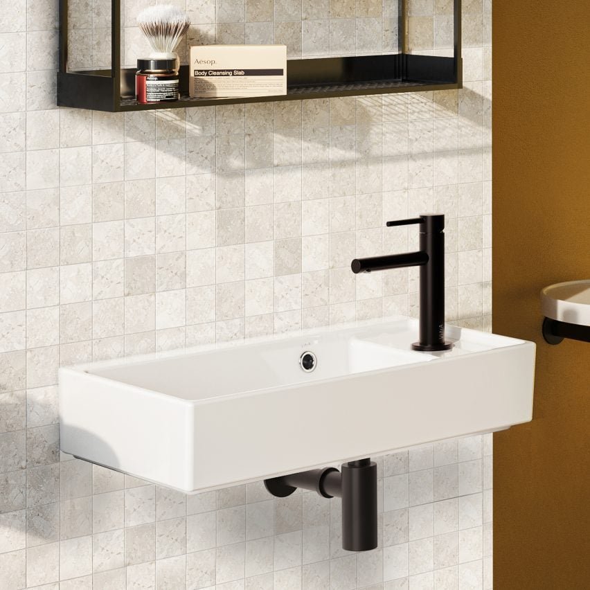 Vitra recomienda el fregadero para salas de capas, en-suites o cualquier área de baño donde el espacio esté apretado.