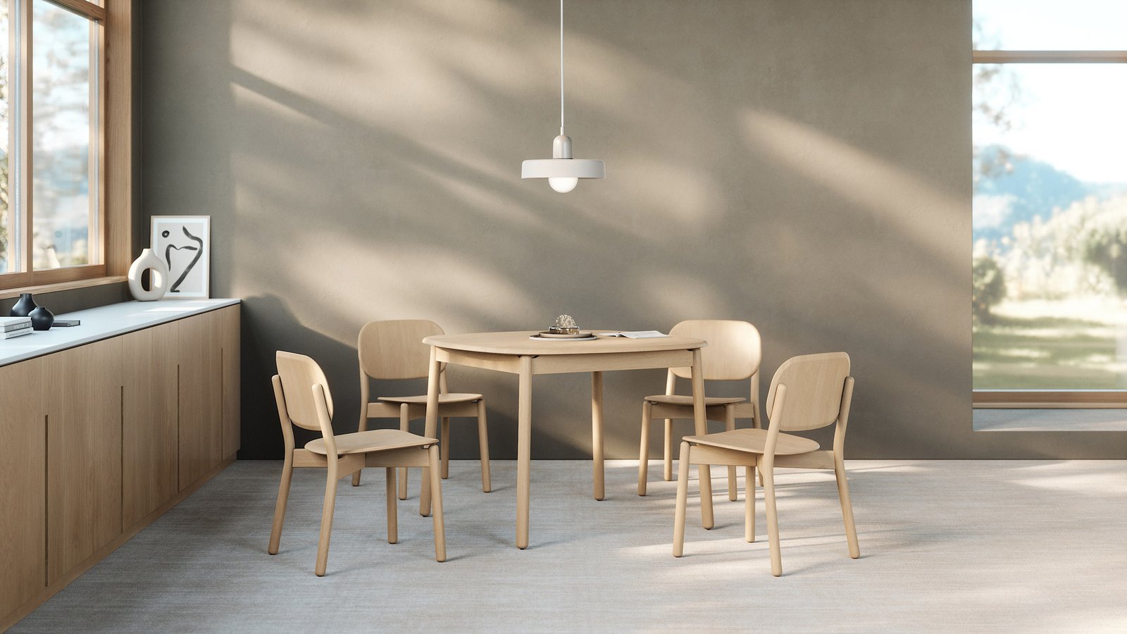Diseño de unión y Estudios KFI tenía como objetivo combinar la artesanía atemporal con un diseño moderno y accesible en el colección silvautilizando patas redondeadas, bordes biselados y un sutil acabado satinado para celebrar la belleza de la madera de haya pure.