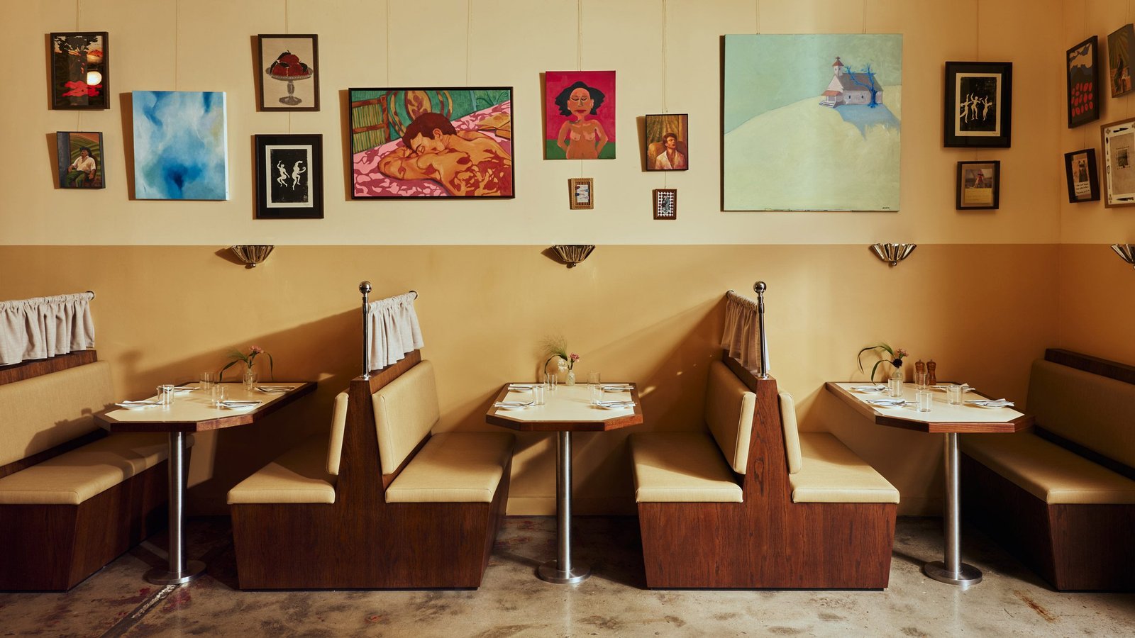 La paleta de colores de la habitación hace referencia al menú del restaurante, con un tono crema de tiramisú contra un amarillo mantecoso que evoca la pasta casera de Haydon.