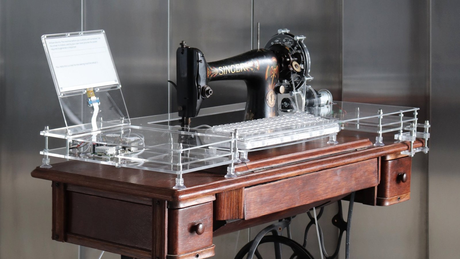 Así que hizo uno usando una máquina de coser de pedal Singer antigua, que modificó para que el pedal alimentara una computadora en lugar de coser puntadas.