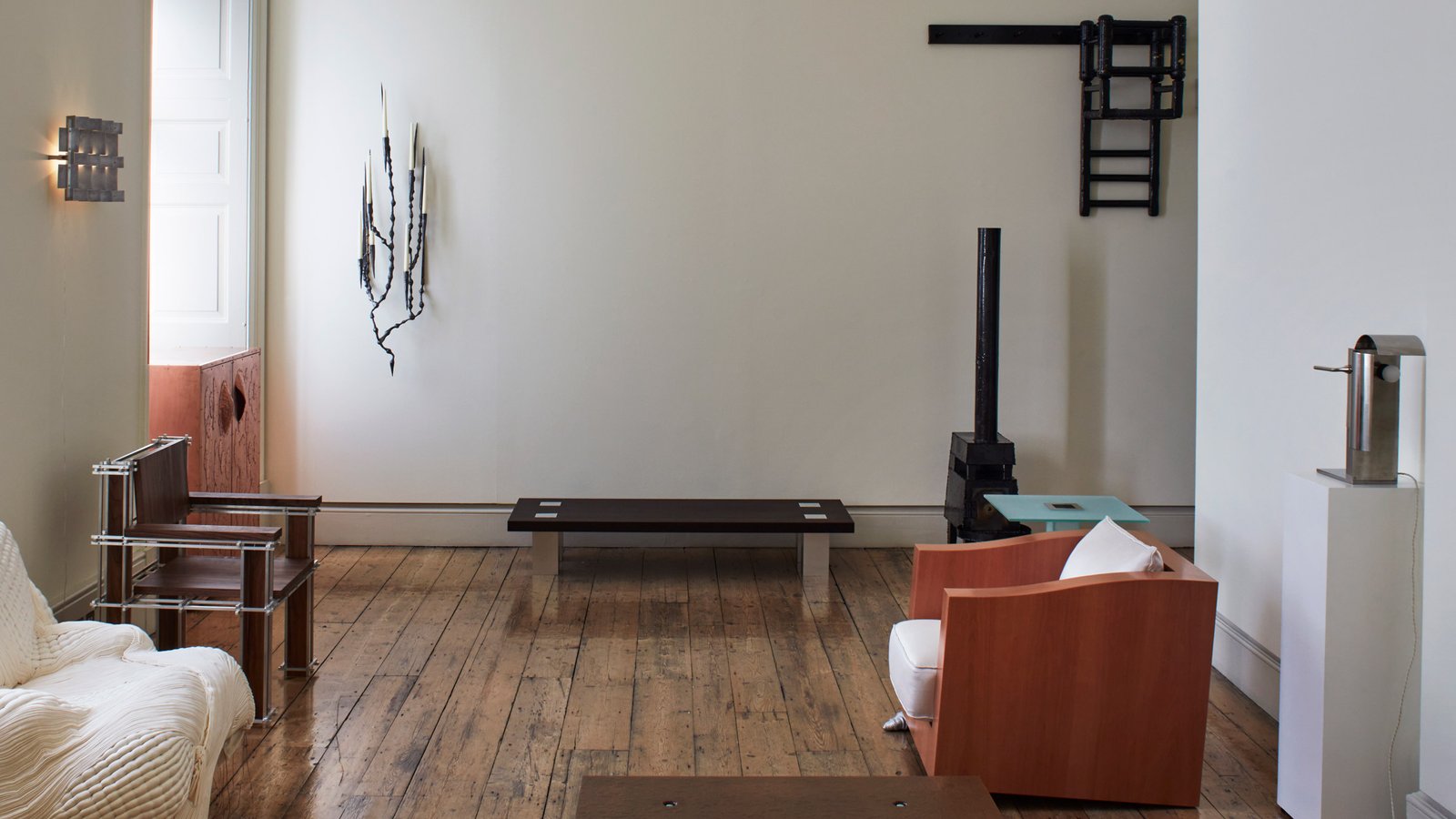 Entre las piezas de menor escala se encuentra un candelabro de pared larguirucho del fabricante de muebles native. Barnaby Lewiscuyas creaciones de acero formaron recientemente la primera exposición rotativa de la galería en la tienda APOC de Londres.