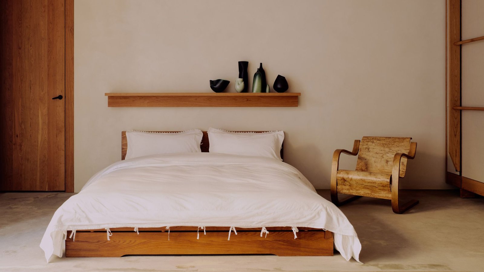 Una paleta de materiales relajantes y naturales de yeso de arcilla, madera de cerezo y lana caracterizan a la marca danesa de artículos para el hogar Tekla’s almacenar en Londres.