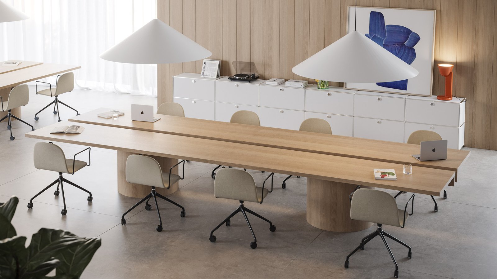 «La combinación de volumen sólido y geometría clara ofrece una composición serena y contemporánea, donde la funcionalidad y la expresión formal coexisten armoniosamente en ambientes profesionales», dijo Omelette Editions.