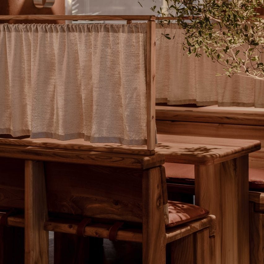 Nina+Co colaboró con una empresa de carpintería a medida Craftworks Productions Para crear gran parte de los muebles del restaurante, que se hicieron con ELM rescatado de árboles enfermos que de otro modo habrían sido quemados.