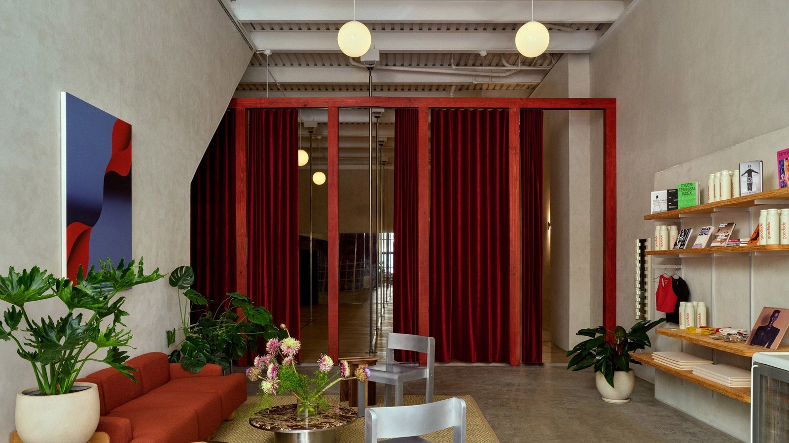 Un gran divisor rojo equipado con cortinas de colour rojo intenso respalda el espacio y conduce a un estudio de postes más allá. La Oficina del Espacio Tangible dijo que el «portal» period uno de los elementos más importantes del diseño.