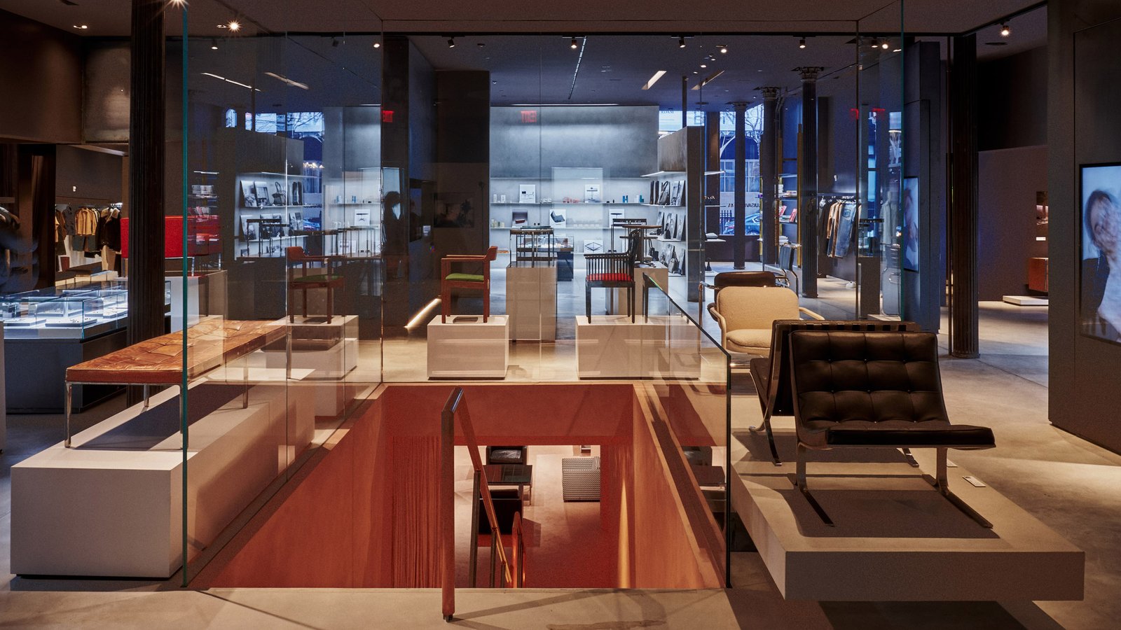 Muebles de SOM: Diseño 1950–1991 muestra piezas de SOM sobre pedestales en todo el LuisaViaRoma tienda en SoHo, Nueva York, coincidiendo con la semana de la moda de la ciudad para marcar «un compromiso compartido con la innovación del diseño, la artesanía y la calidad en la arquitectura, el mobiliario y la moda».