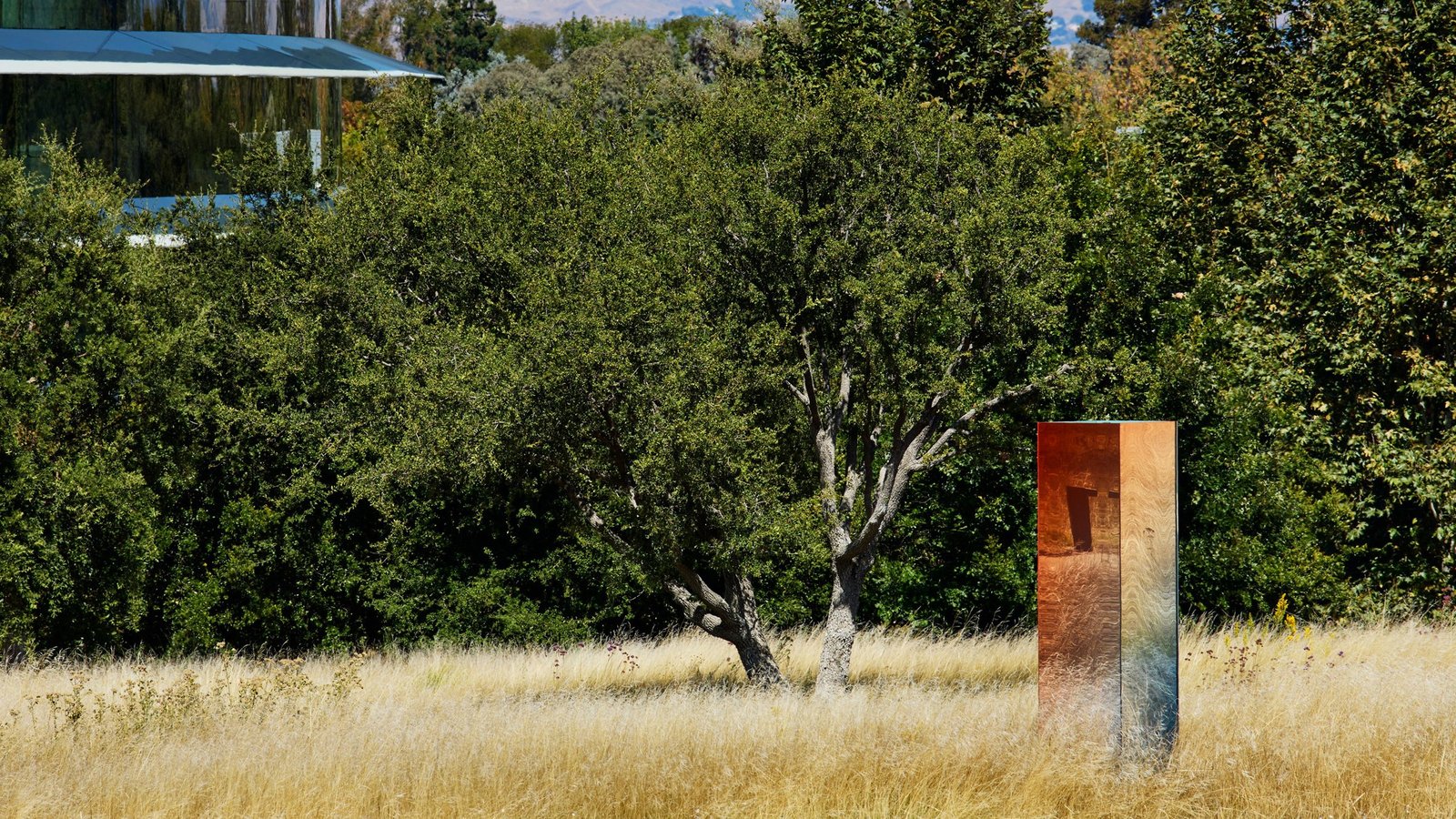 Creó un obelisco de 330 centímetros de acero recubierto de polvo que se interpone entre el Observatorio y el principal, Edificio de Apple Park diseñado por Foster + Partners.