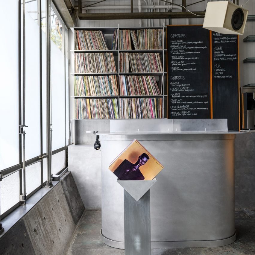 Estudio con sede en Calfornia por delante ha convertido un ex San Francisco Café de música en el costado A restaurante y barra de vinilo, que incluye un soporte de DJ de aluminio personalizado.