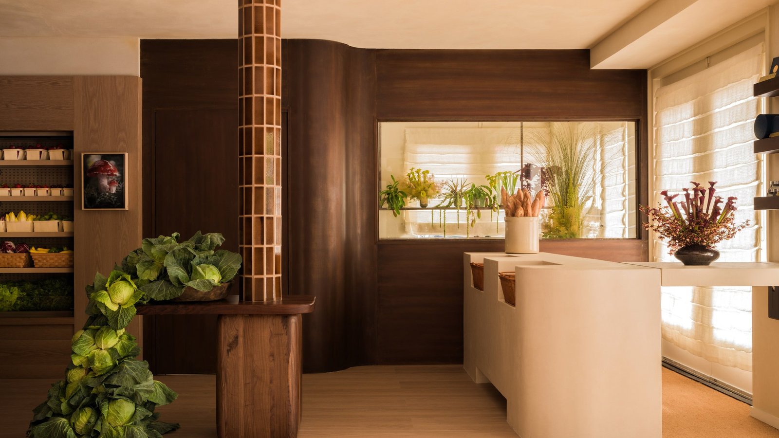 Nussdorf y Carpenter trabajaron juntos para crear un ambiente cálido y texturizado que se aleja radicalmente de la estética brillante y estéril que normalmente se encuentra en las tiendas de comestibles.