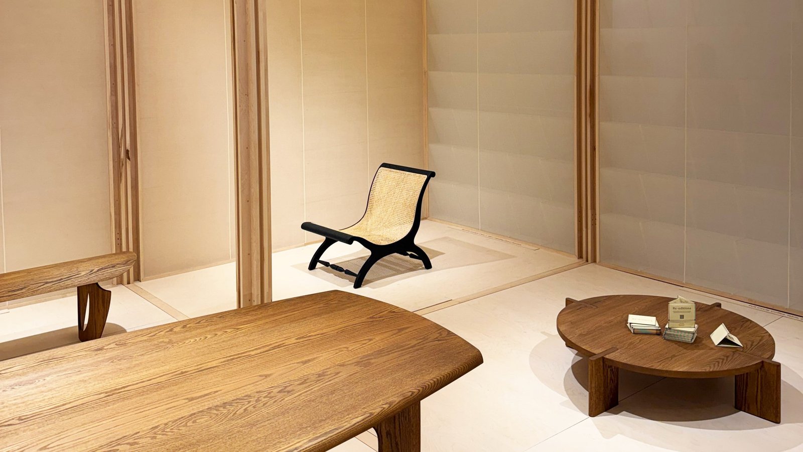 En Design Mumbai, las piezas se exhibieron en un pabellón de madera sostenido por columnas tipo Ludwig Mies van der Rohe, lo que creó un espacio tranquilo lejos del bullicio de la exposición principal.