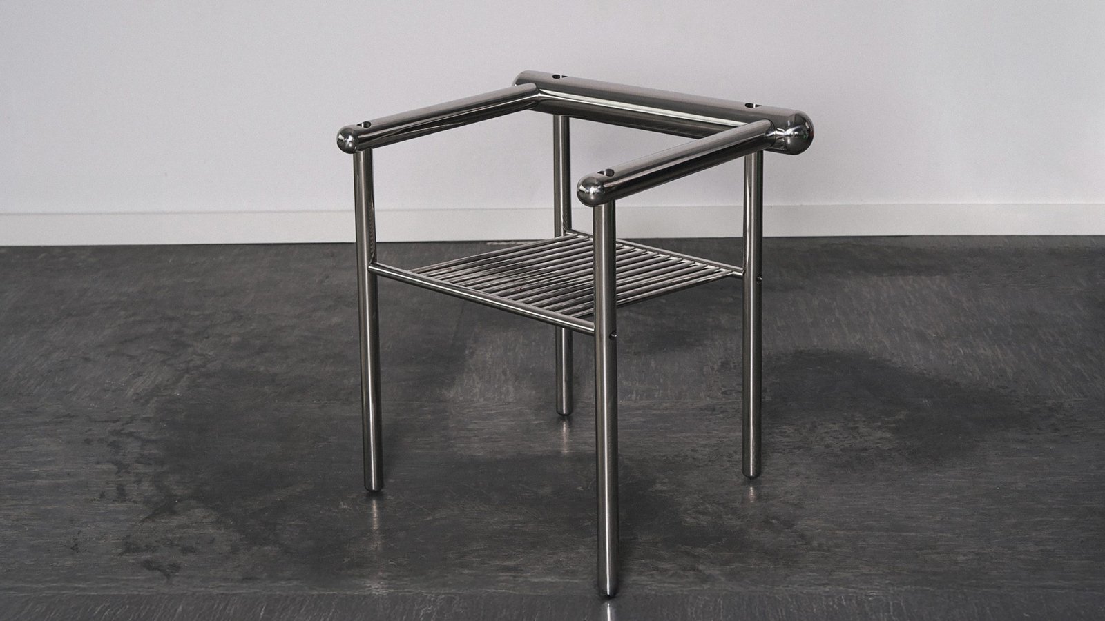 Diseñado por Sipiora y fabricado en el taller metalúrgico de su familia, el Sillón Spektra presenta una silueta lineal easy realizada en diferentes espesores de tubos redondeados de acero inoxidable.