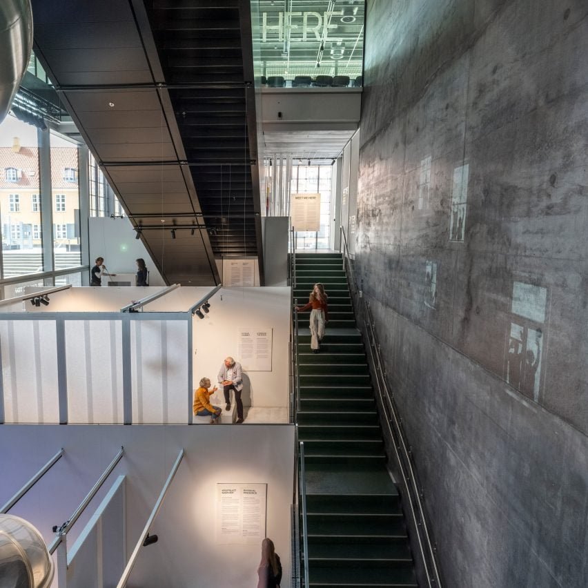 En exhibición en las escaleras de la galería en el Centro de arquitectura danesa (DAC), la exposición presenta una serie de espacios que requieren que las personas estén físicamente presentes y totalmente comprometidas.