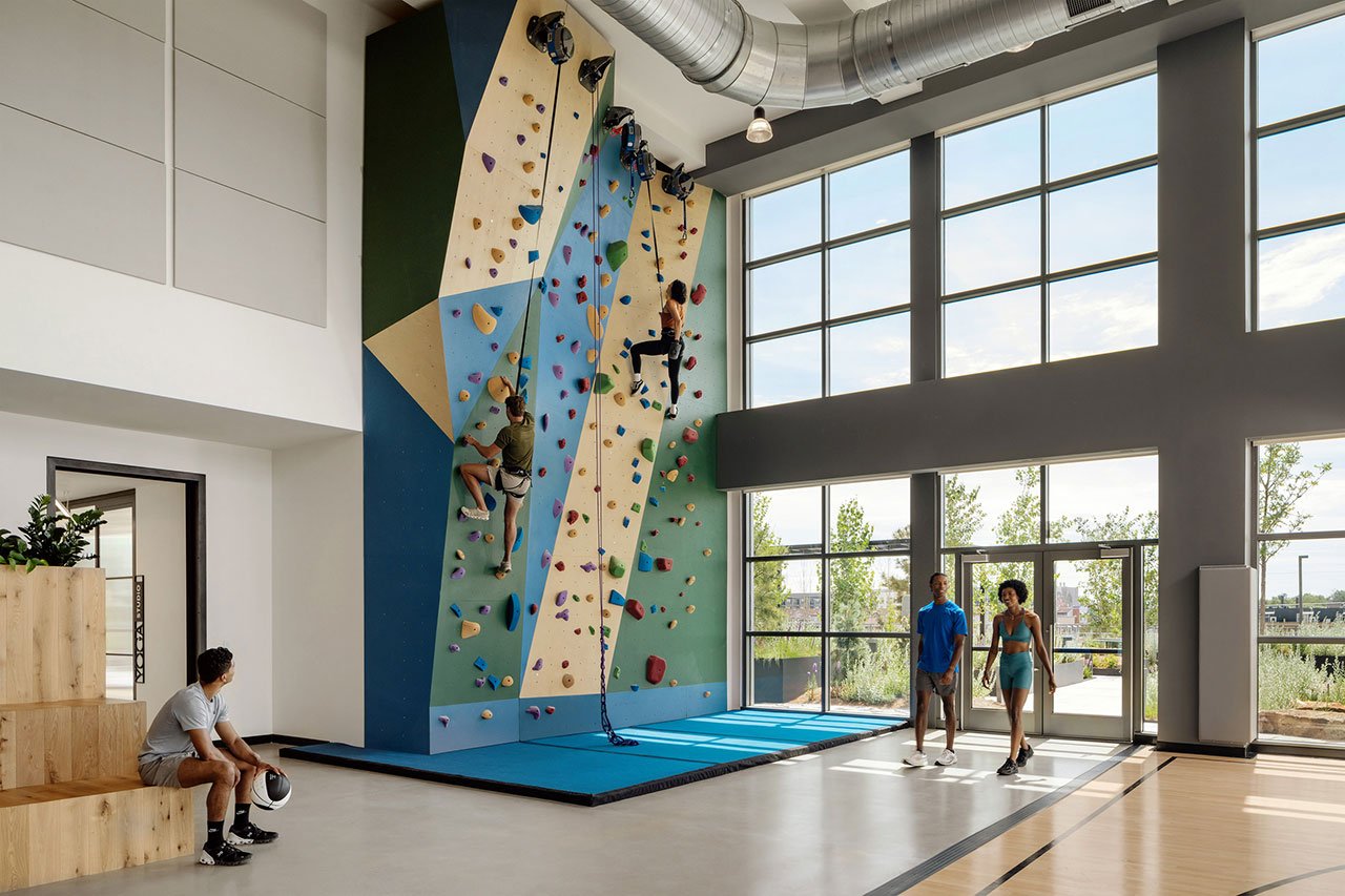 El estilo de vida centrado en el bienestar de los residentes de la ciudad es clave, con 10,000 pies cuadrados de comodidades en oferta. Una cancha deportiva cubierta, un muro de escalada y un estudio de yoga son ideales para las personas que desean mantenerse activas durante el día. Los viajeros también pueden guardar sus bicicletas en una sala de bicicletas con estaciones de reparación.