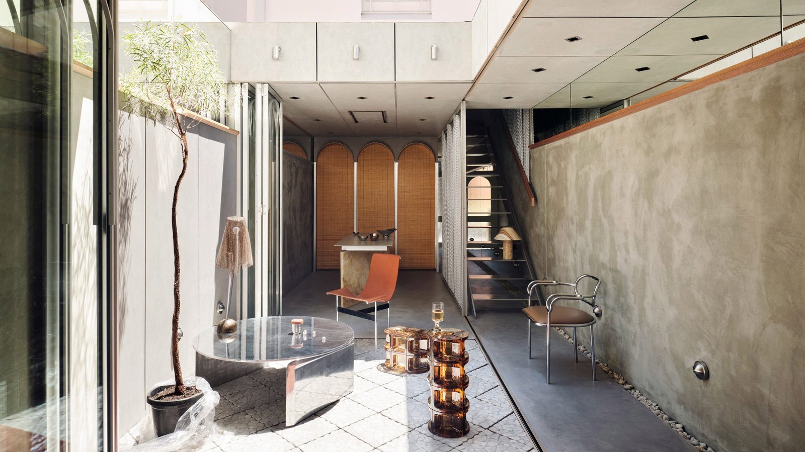 Las superficies espejadas crean la ilusión de espacio adicional dentro de esta casa adosada renovada en SídneyAustralia, que el estudio native Alcami Structure diseñó alrededor de un espacio completamente abrible patio.