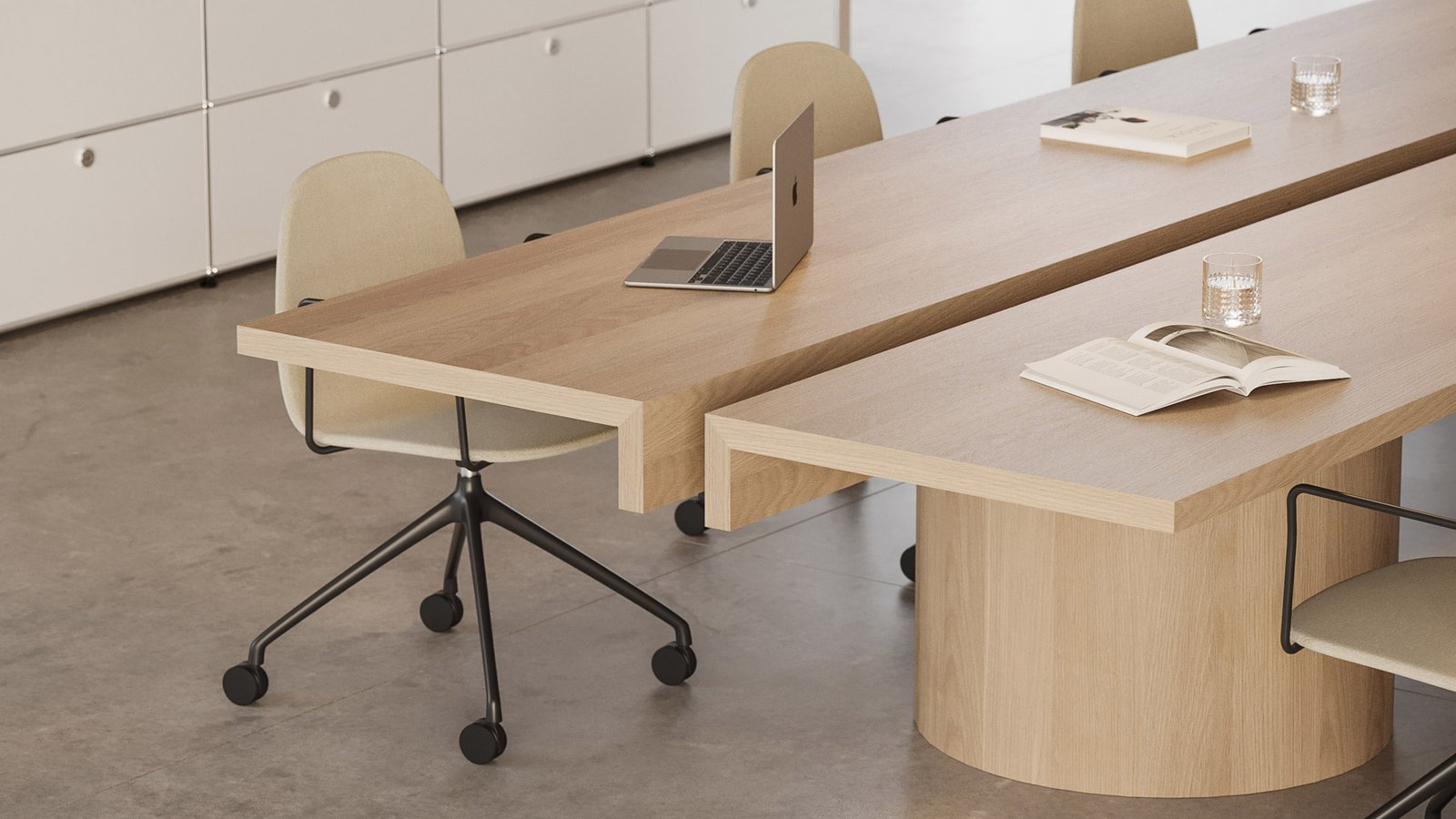 Sala de exposición Dezeen: un coworking escritorio equipado con una «zanja» que alberga enchufes eléctricos se encuentra entre los siete nuevos productos presentados en Dezeen Showroom.